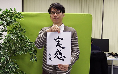 『本当は「成長」という言葉を書こうかとも思ったんですが、「成長」って自分では成長したかどうか分かりにくいですよね。成長したかどうか分かるのは、自分が成長を「実感」できたときだと思うんです。組織としても成長を「実感」できる会社にしたいですし、そして自分自身も成長を「実感」したいという思いを込めました。』