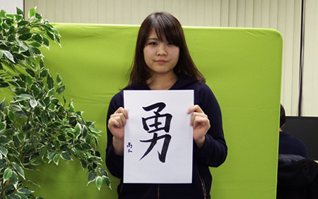 『臆病なのを直したくて「勇敢」という文字を書こうと思っていたのですが、一文字の書き初めの方が多いので、揃えて「勇」という一文字にしました。ソニックガーデン唯一の女性プログラマと言われているので、敢えて男という字が目立っていいかなと思いました。積極的に外に出ていけるように頑張って行こうと思っています。』