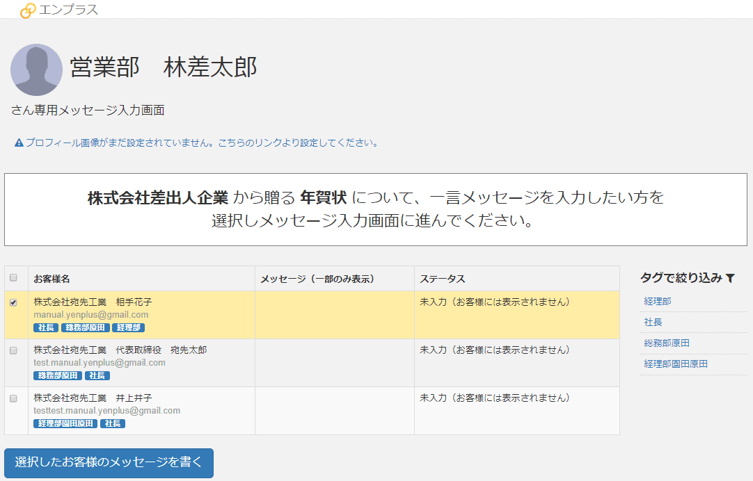 髙谷そうです。『エンプラス』はデジタルなので、そのメッセージも好きなだけ長く書いてもらうことができます。
