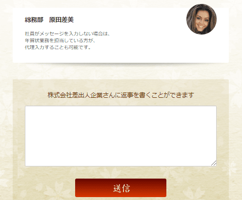 門田年賀状の個別メッセージの下に、返信コメントを入力する部分をご用意しています。