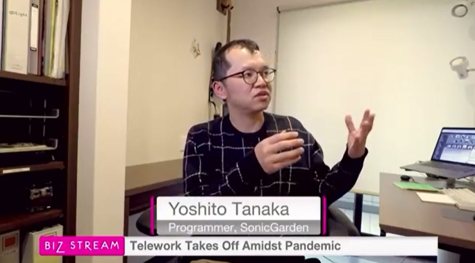 弊社代表の倉貫と兵庫県でリモートワークをしている田中に取材いただいた内容が放送されました。今回の番組テーマは「新しい働き方」で、新型コロナウィルスの影響で テレワークを行う企業が増えていることなどから「全員リモートワーク」の弊社を取り上げていただきました。