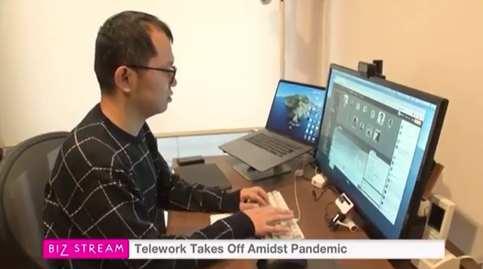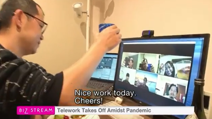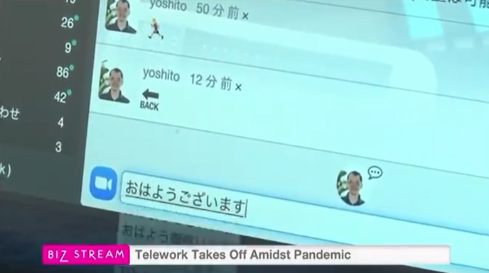 弊社の社員がどのように業務を行っているのか、自宅での仕事風景を通して、弊社が開発した仮想オフィス「Remotty」の仕組みやリモート飲み会の様子も取り上げていただきました。