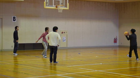 昼食後の運動と称しバスケをはじめるメンバがいたり