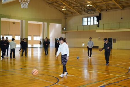 こちらでは元女子バスケ部長のメンバによるバスケ講座が開かれているようです!