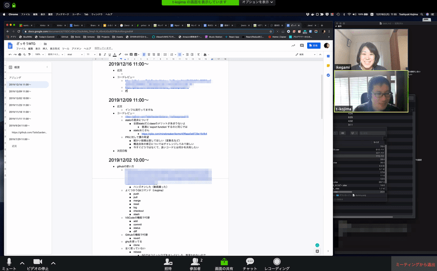 池上本当にどうでもいい話をしていたり、その中で「最近ここが分からないんですよね」という相談をしたりもします。先ほどお話したふりかえりをしている3人とは別のメンバーでチームを組んでいるのですが、他のメンバーが参加してもいいので、テレビ電話をしているURLは掲示板上に公開しています。