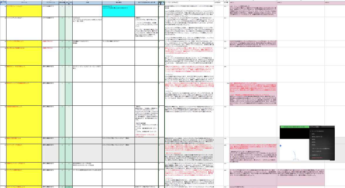 Googleスプレッドシートで同時編集しながら執筆する様子。