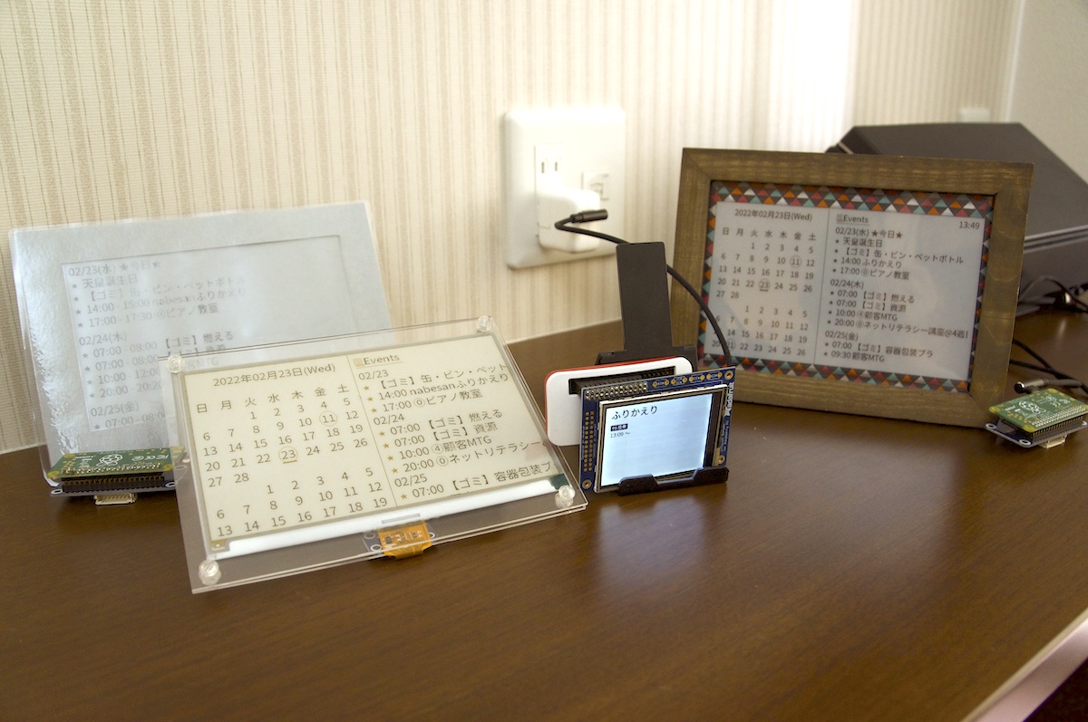 田中今は家族で共有できる電子卓上カレンダーを作っているところです。パネル部分だけ電子部品で、外側は100均で買ったものを組み合わせて、僕と妻と妻の両親の生活エリア3カ所に置いています。全部同期して、スマホを開かなくてもぱっと見ればわかるように。