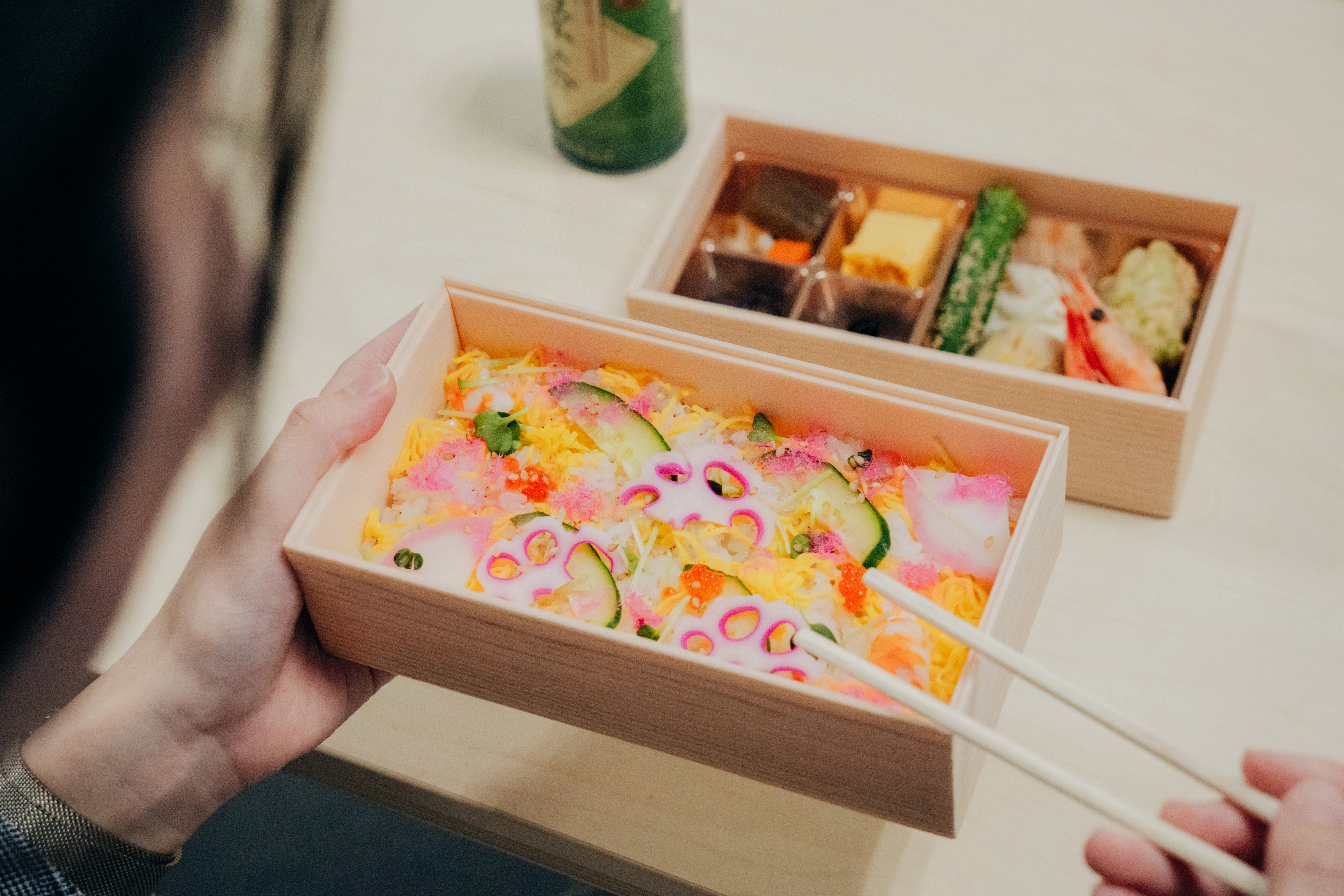 そのあとは、新入社員も先輩メンバーも入り混じってのランチタイム。 春らしい彩りのある美味しいお弁当を堪能しながら、歓談しました。