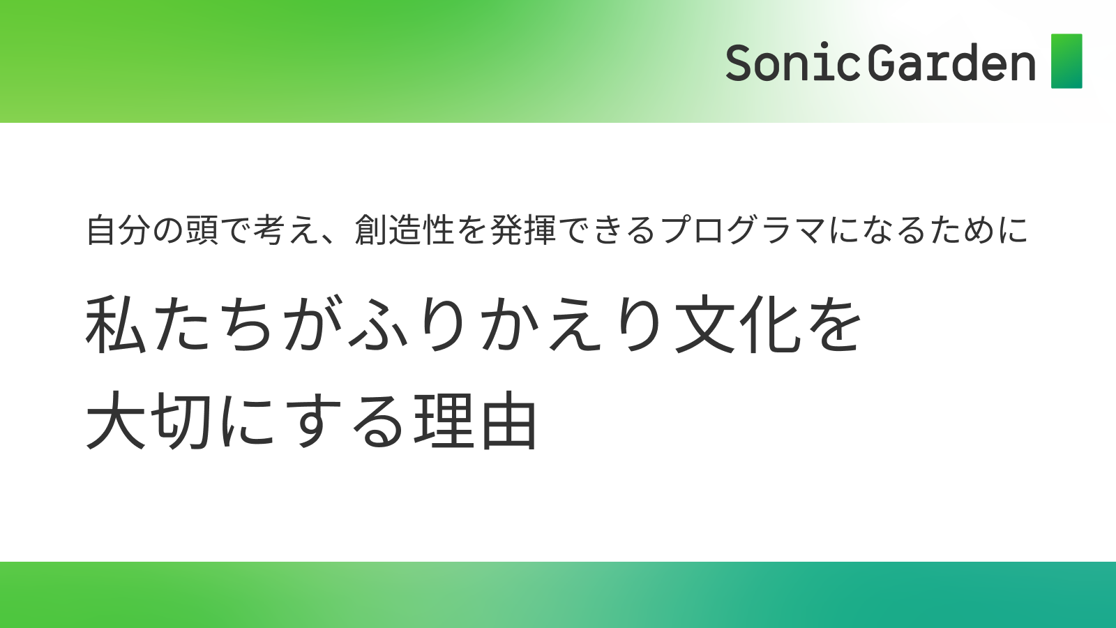 ソニックガーデンの文化である「ふりかえり」を探求する特集シリーズ「成長する私たちのふりかえり」。