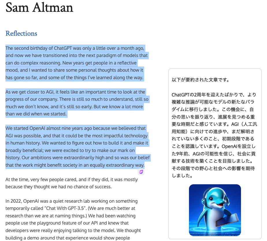 ページ移動せず、AIでの要約や、入力した文章の続きを生成できるChrome拡張機能です。
