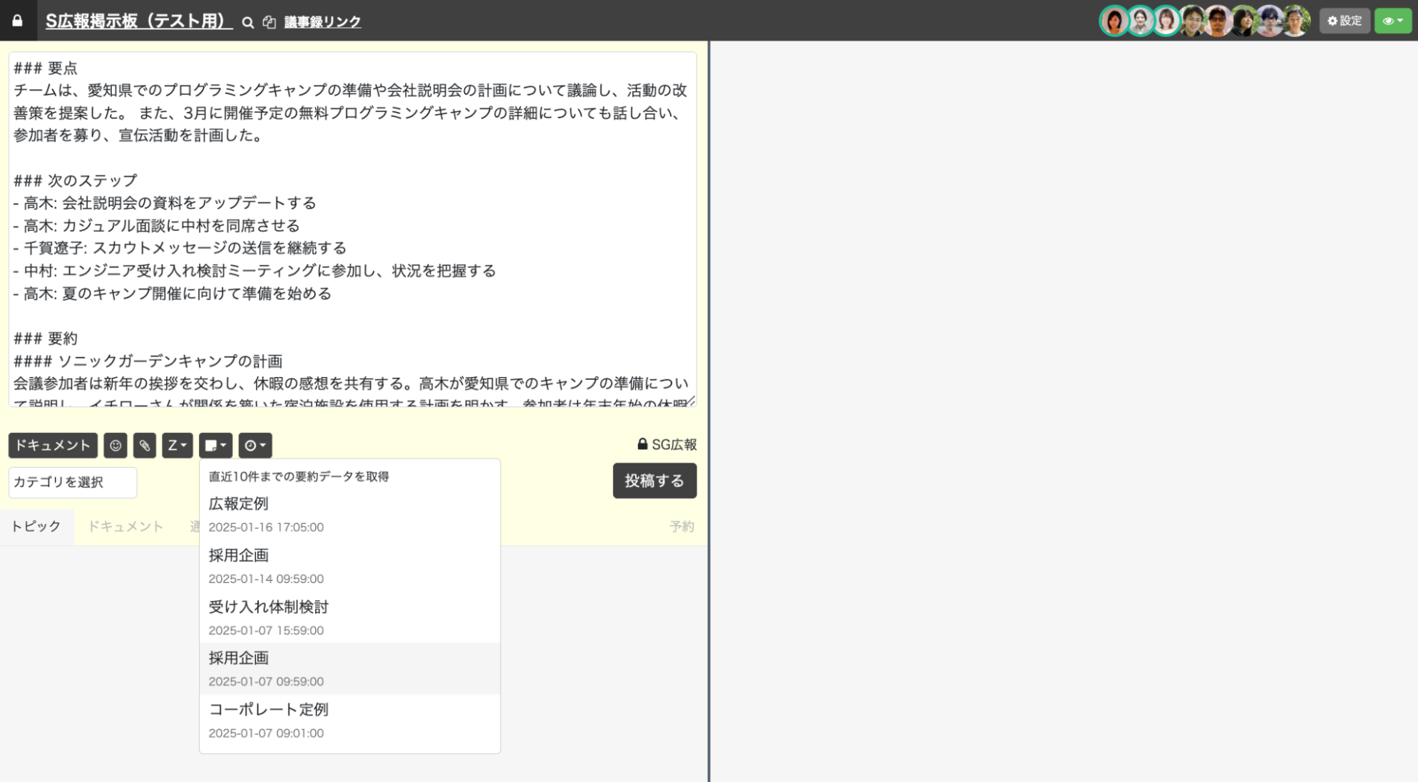 【3位】ミーティング要約の掲示板貼り付け機能