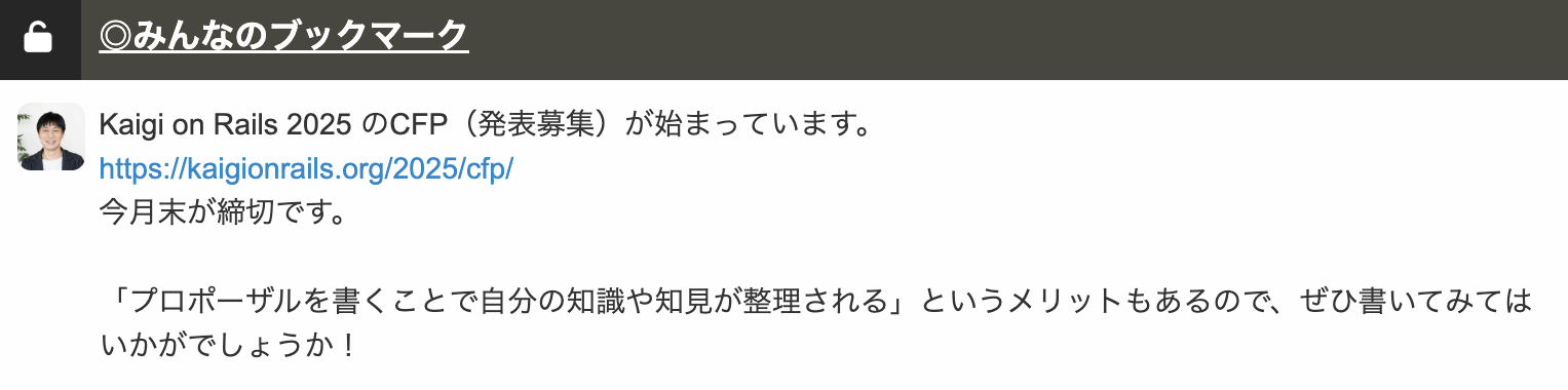 そんなタイミングで、社内掲示板にKaigi on Rails 2025のCFP(発表募集)が始まっていますっていう投稿を見つけました。「よし、ダメもとで出してみるか!」って、勢いで応募してみました。