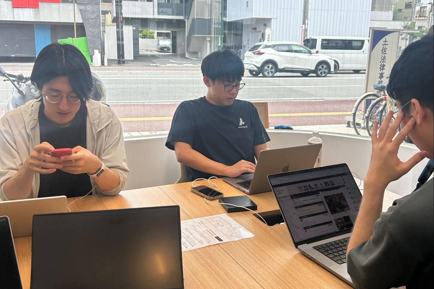 普段、岡山の親方のもとで腕を磨いている弟子たち。ハッカソン中は要件定義、実装、デプロイまでをすごいスピードで進めていて彼らの成長を間近で実感できる良い機会になりました。