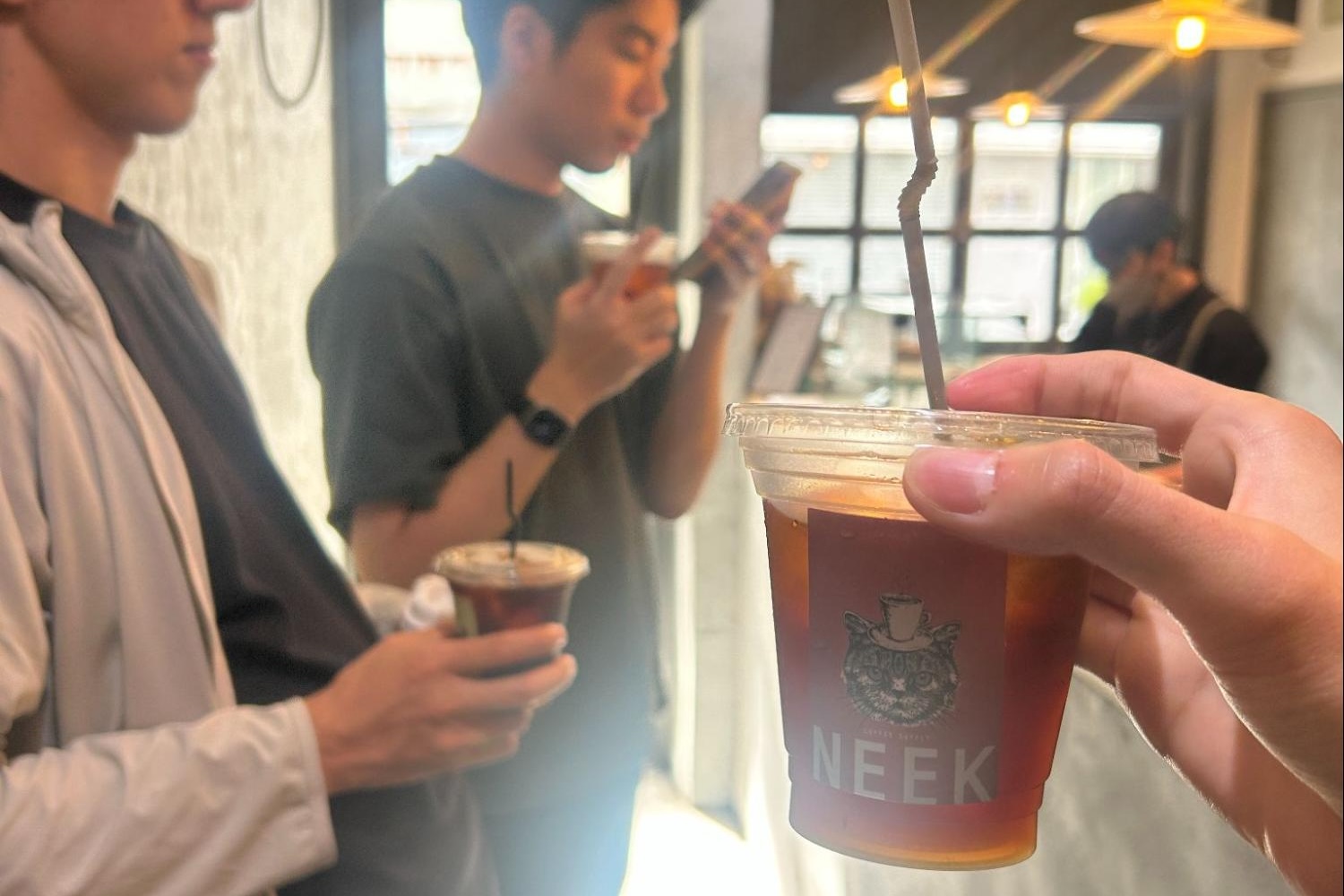 移動の合間にコーヒー専門店でコーヒーの調達。コーヒーにこだわりの強めなdosanセレクトの美味しいコーヒーをみんなでいただきました。