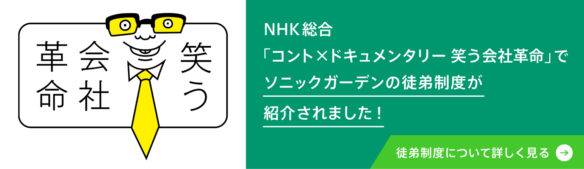 9月10日に放送されたNHK総合「コント×ドキュメンタリー 笑う会社革命」で、ソニックガーデンの「徒弟制度」を、10分間にわたるドキュメンタリーとして紹介いただきました。