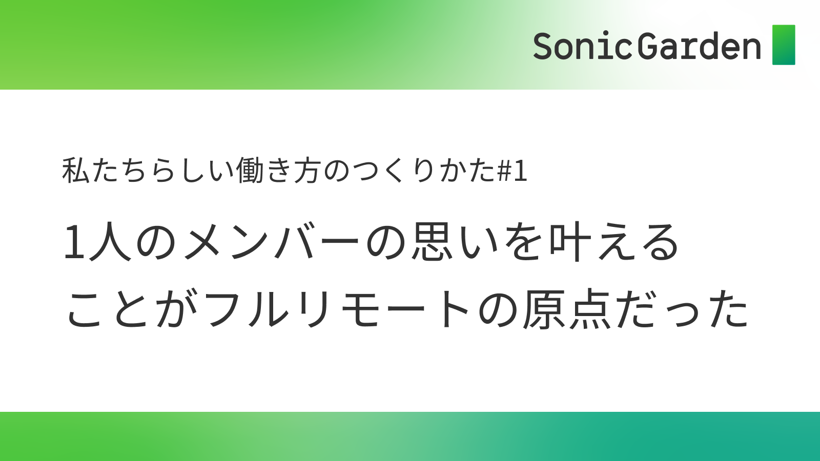 ソニックガーデンの働き方の変化を追う特集シリーズ「私たちらしい働き方のつくりかた」。