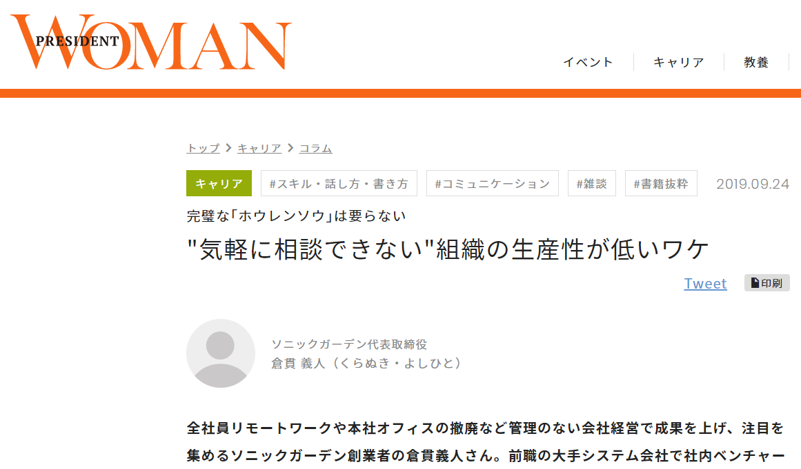 完璧な「ホウレンソウ」は要らない "気軽に相談できない"組織の生産性が低いワケ|「PRESIDENT WOMAN」