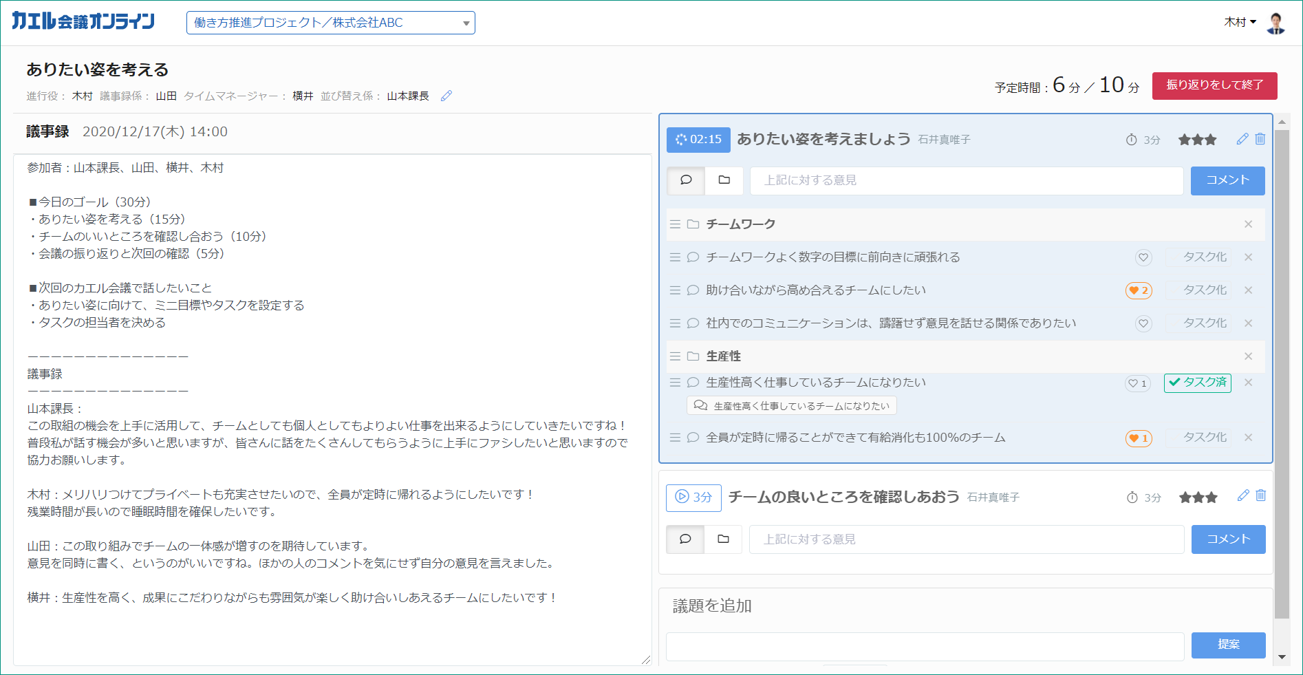 安達そして現在、WLB社さんでは、新しくカエル会議オンラインの開発を進めています。カエル会議も、WLB社さんが考案された、働き方改革のための仕組みですよね。
